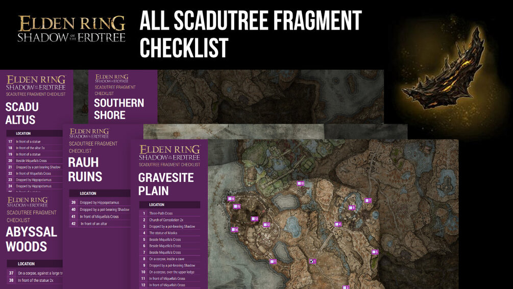 Find ALL Scadutree Fragments in Elden Ring: Shadow of the Erdtree with this comprehensive checklist! A permanent boost to your DLC damage dealt and damage negation.